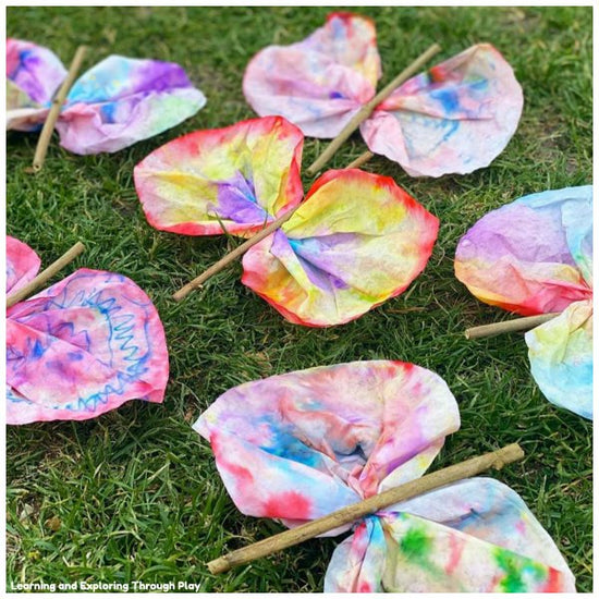 Filter Paper ButterfliesProcess art at its best. An effective art project to make butterflies using mark making and sqibbers filled with water to get the hand muscles working. Give them a go!